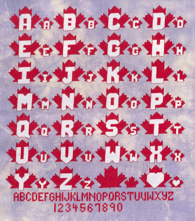Maple Leaf Alphabet, model-stitched for Karen Healey of TraditionalSmilin'.