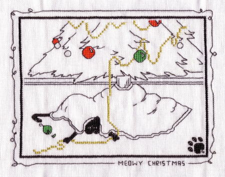 Completed Dec, 2004. Meowy Christmas by Kats by Kelly. Stitched on 28ct white Belfast Linen. Back to [my xstitch page.]